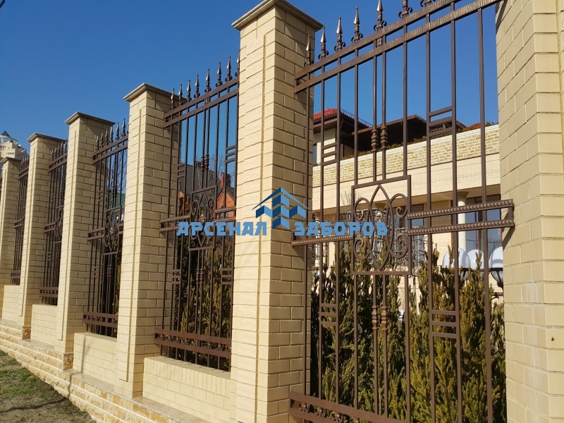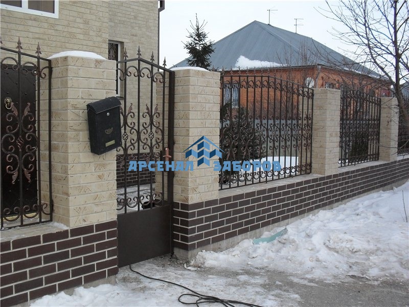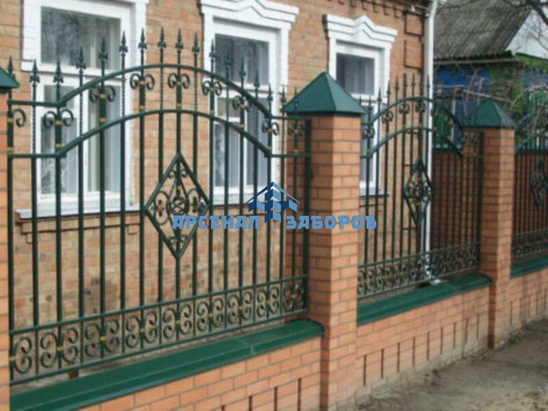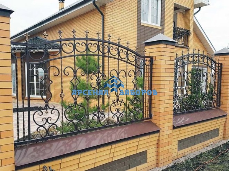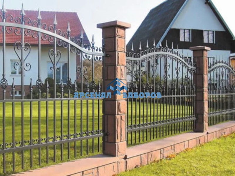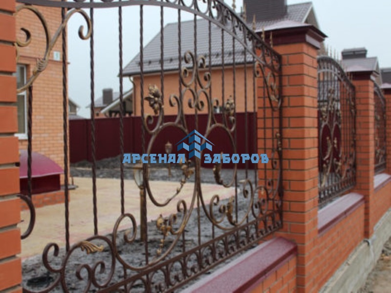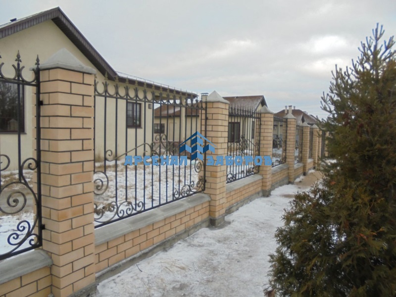 Фото работ - кованые заборы с кирпичными столбами