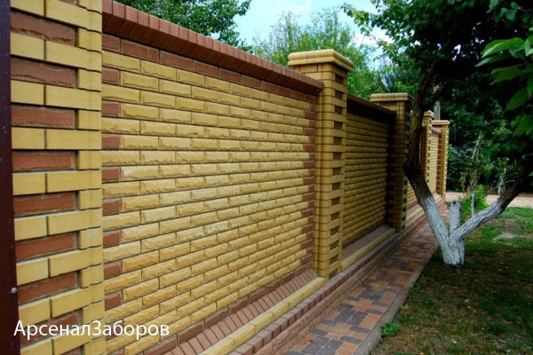 Компания «АрсеналЗаборов» предлагает своим клиентам заказать качественный и надежный забор из кирпича по выгодным ценам. Мы изготавливаем ограждения из кирпича под ключ в максимально быстрые сроки. Узнать стоимость забора или оформить заказ Вы можете в режиме онлайн.