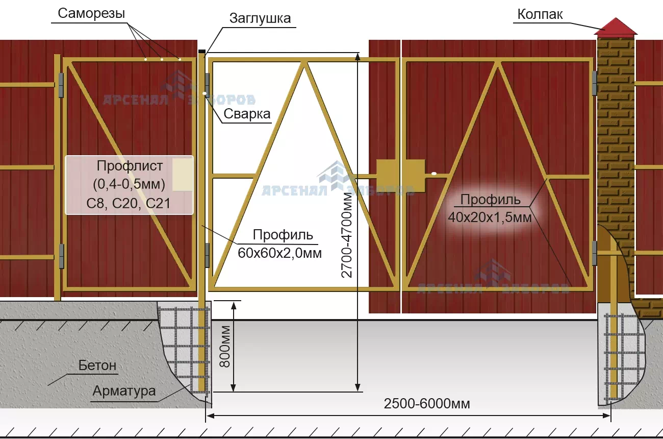 Конструкции распашных ворот на ленточном фундаменте