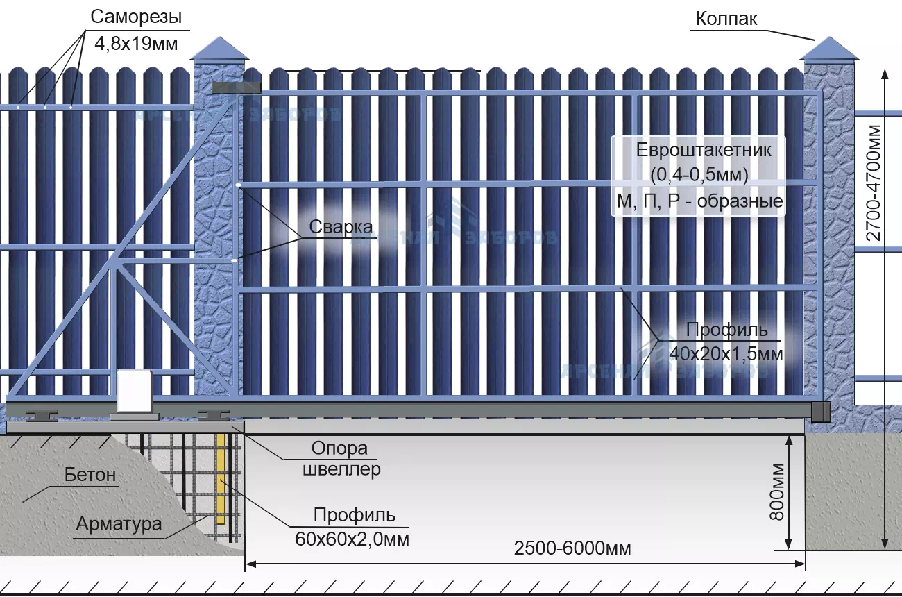 • Конструкция откатных ворот на ленточном фундаменте