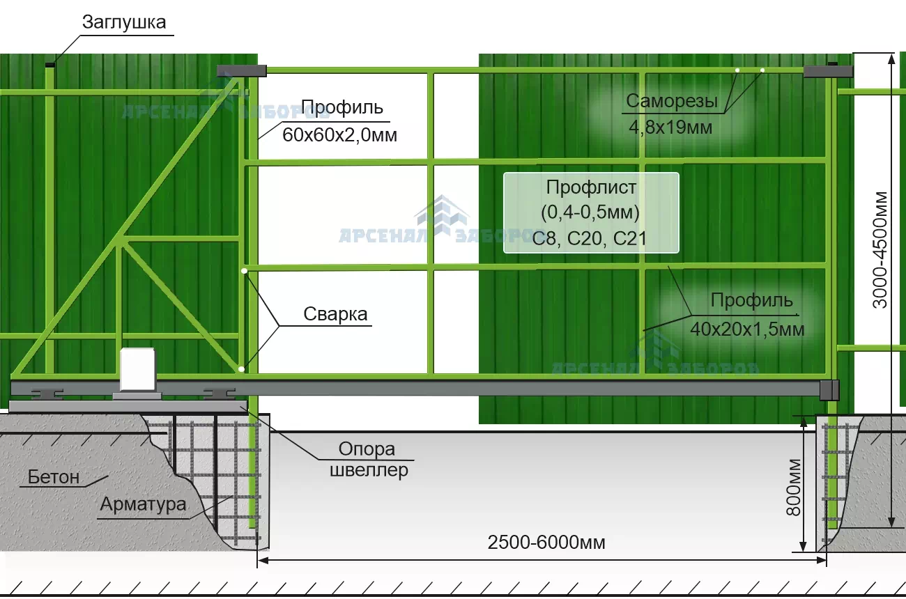 Конструкция откатных ворот на ленточном фундаменте